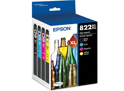 Epson T822XLXCS (T822XL) DURABrite Ultra High-Yield Black/Cyan/Magenta/Yellow Ink Cartridges, 4PK