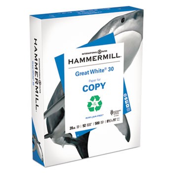 Great White 30 Recycled Paper, 92 Bright, 20lb, Ltr, 500/RM, 10 RM/CT