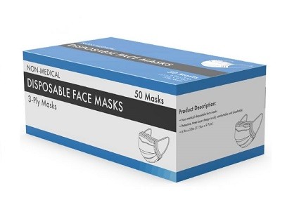 Recommended for: Face – 3-ply, Tear Resistant, Disposable, Comfortable, Earloop Style Mask – Blue – 50 / Box